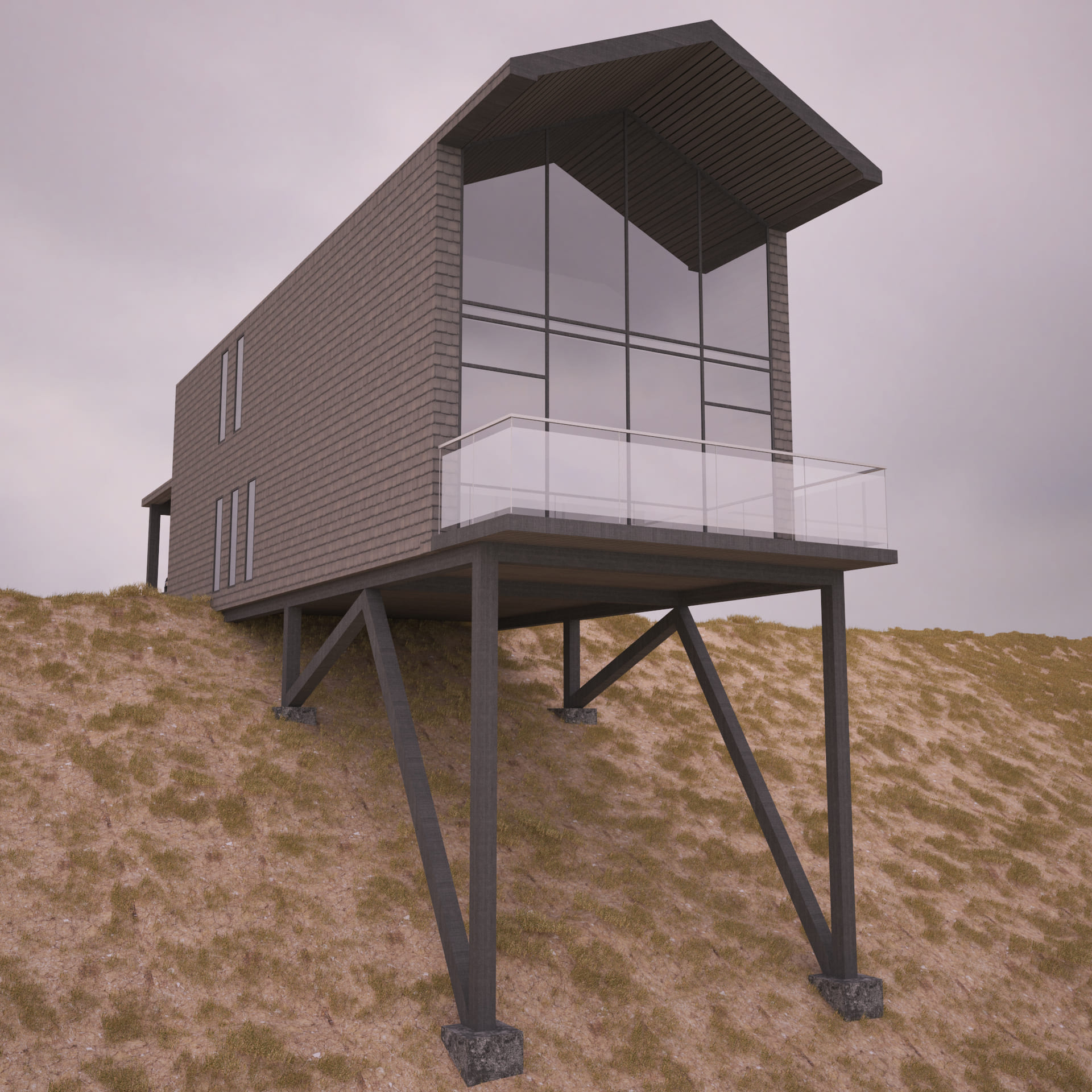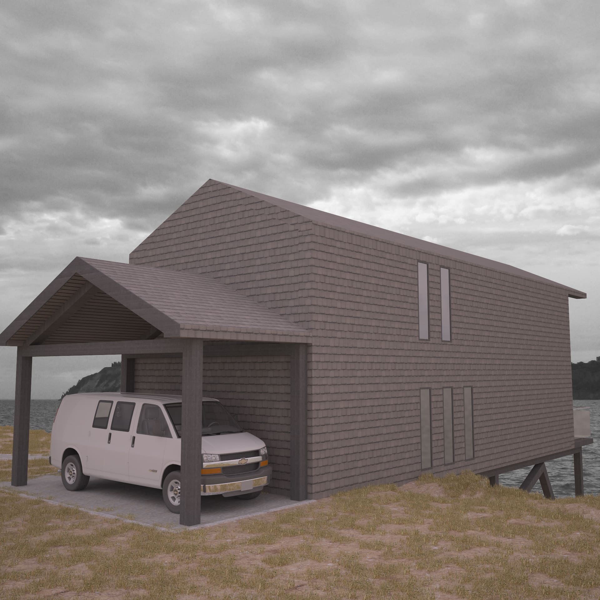 2 месяцаКак выше описано, заказчиком данного проекта выступил художник. Дом расположен в живописном месте степи. В техническое задание входило размещение мастерской художника и гостиной с кухней на первом этаже, спальни и приватная зона расположены на втором этаже. Проект, к сожалению не реализован.