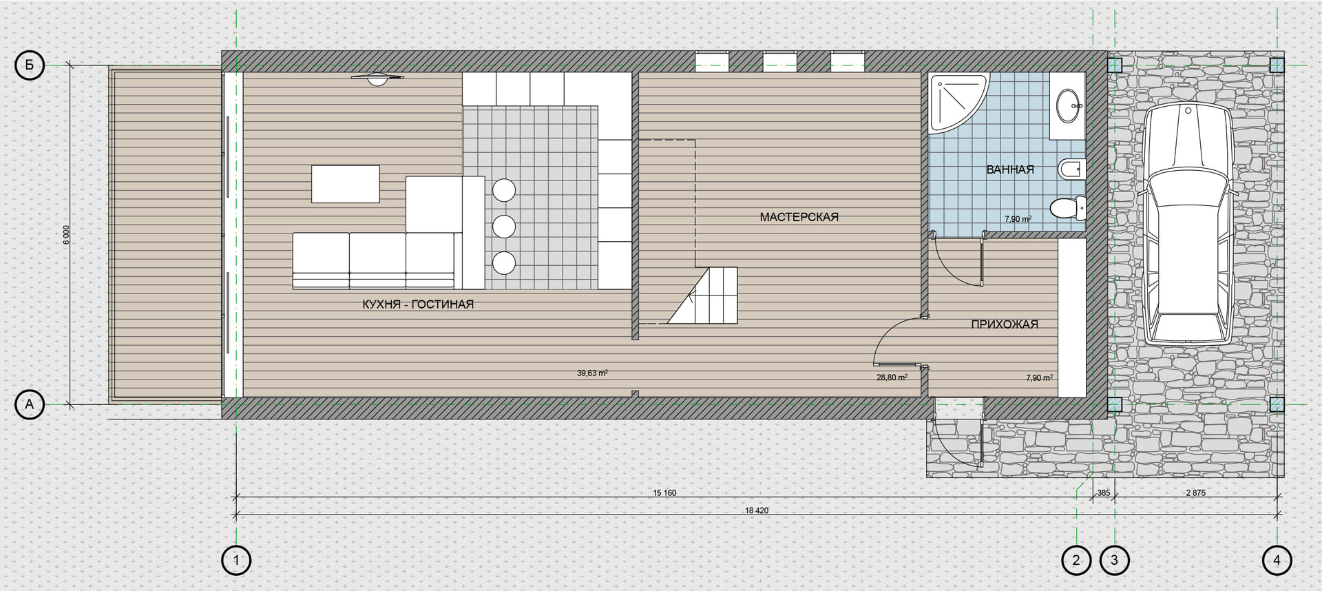 Запроектировать дом-мастерскую для художника.Площадь: