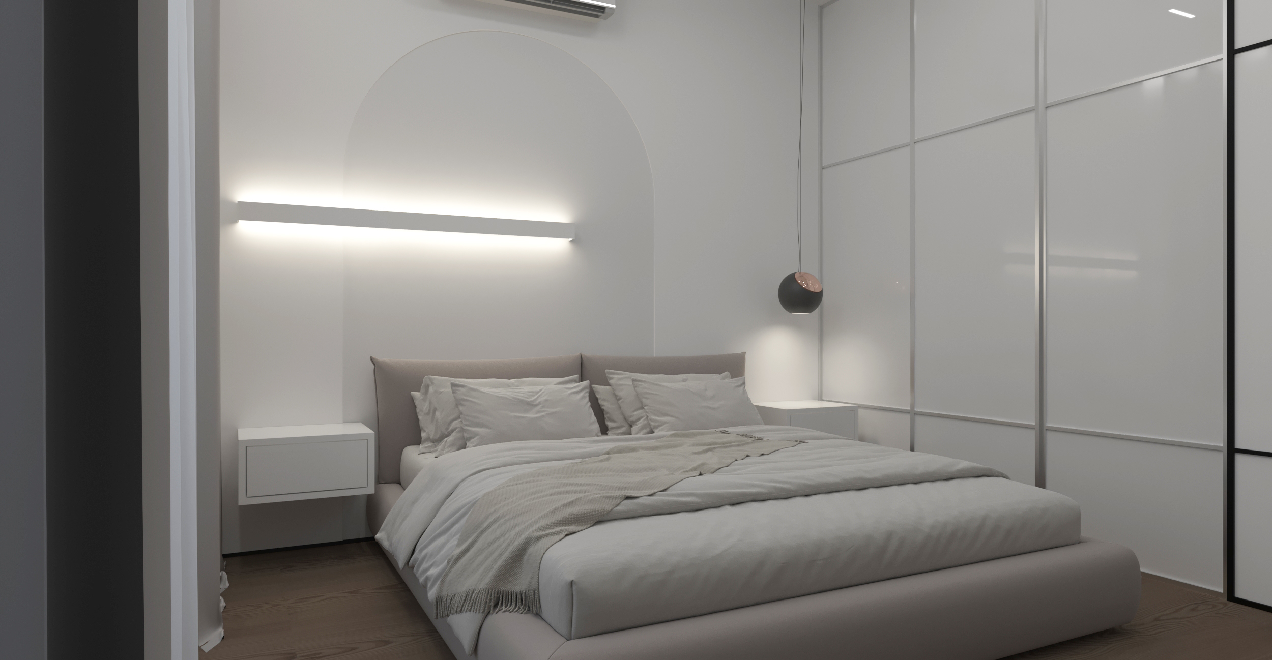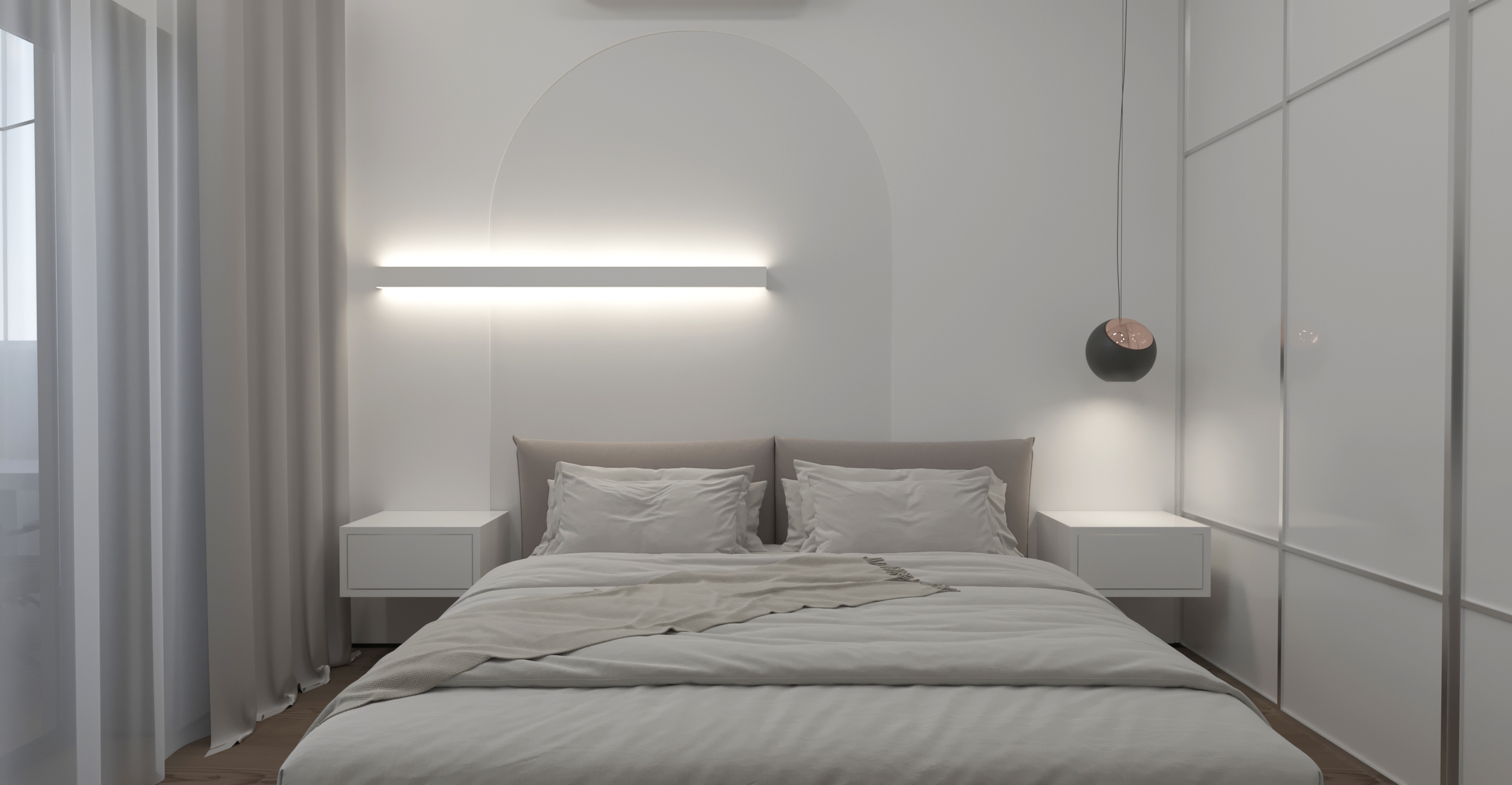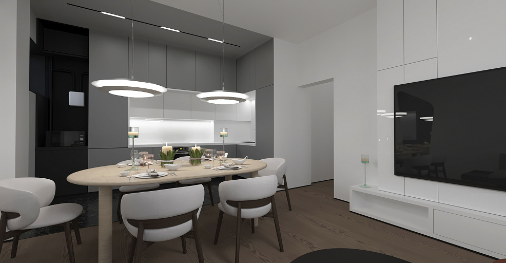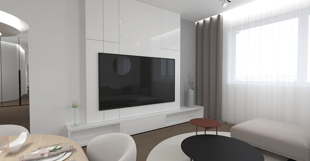 Квартира располагается в Ростове-на-Дону . Ставилась задача сделать интерьер для двух человек в современном стиле.